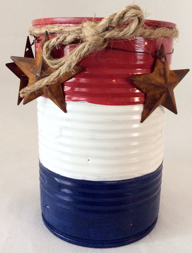 Tin Can Candle Holder, Americana Primitive Decor, Country Decor, Independence Celebration