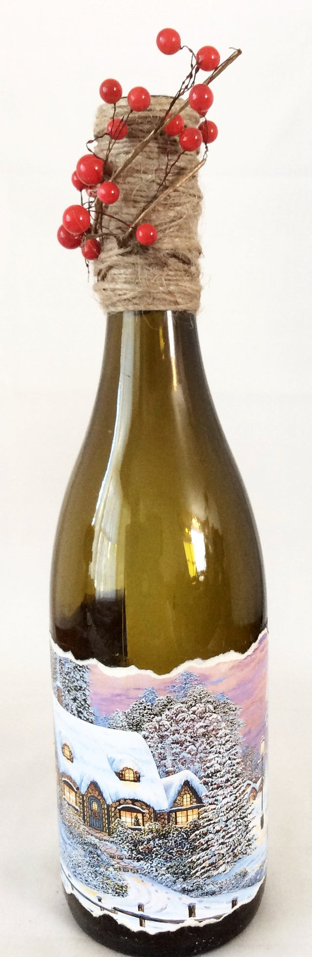 Glass Bottle Vase, Christmas Wine Bottle Vase, Winter Scene, Decorative Vase