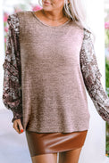 Pale Chestnut Ruffle Tiered Floral Sleeve Crew Neck Blouse