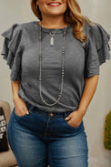 Dark Grey Double Ruffled Short Sleeve Plus Size Top