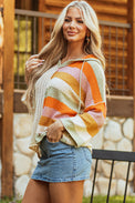 - Fall in love with this women’s sweater for its eye-catching color block.