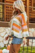 DEAR-LOVER Beige Oversized Colorblock V Neck Hooded Sweater
