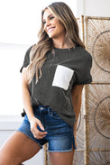 Light Blue Corded Knit Color Block Pocketed Crew Neck T Shirt