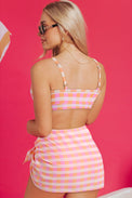 Pink 3pcs Gingham High Waist Bikini & Sarong