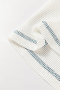 White Floral Patchwork Waffle Knit Raglan Top