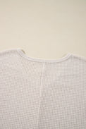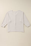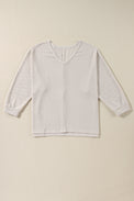 White Waffle Knit Side Slits Loose Fit V Neck Top